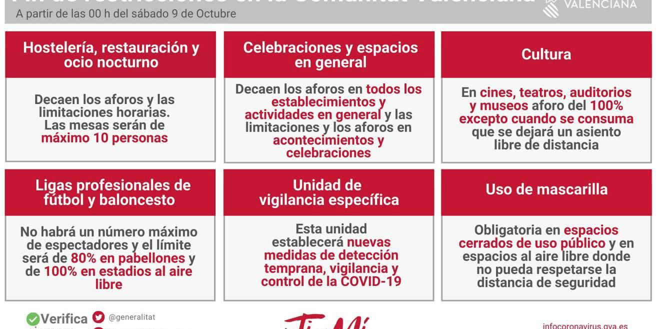 Desde el pasado nueve de octubre de dos mil veintiuno, han llegado el fin de las restricciones en toda la Comunidad Valenciana.