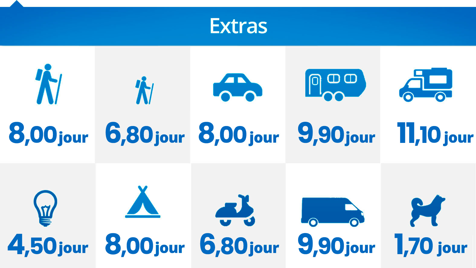 2 personnes  //  Caravane+voiture ou Camping-car ou tente+voiture  //  Accés aux avantages du camping  // Accés aux toilettes//  Accés á la piscine